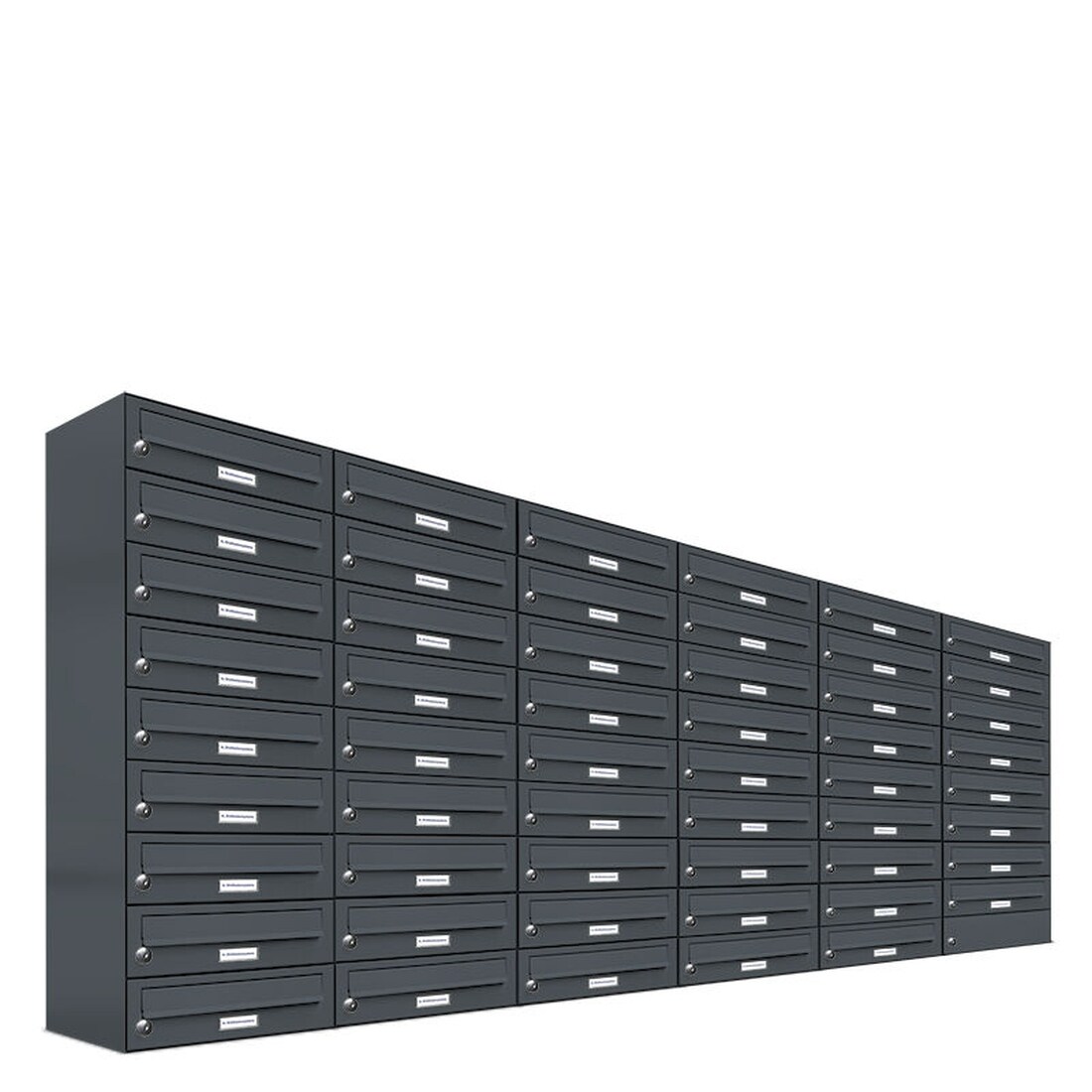 AL Briefkastensysteme 53 Fächer Premium Wand Briefkasten Anlage in RAL 7016 Anthrazit Grau, Post A4, robust, wetterfest, Artikelnummer: 132P53EA6P7016
