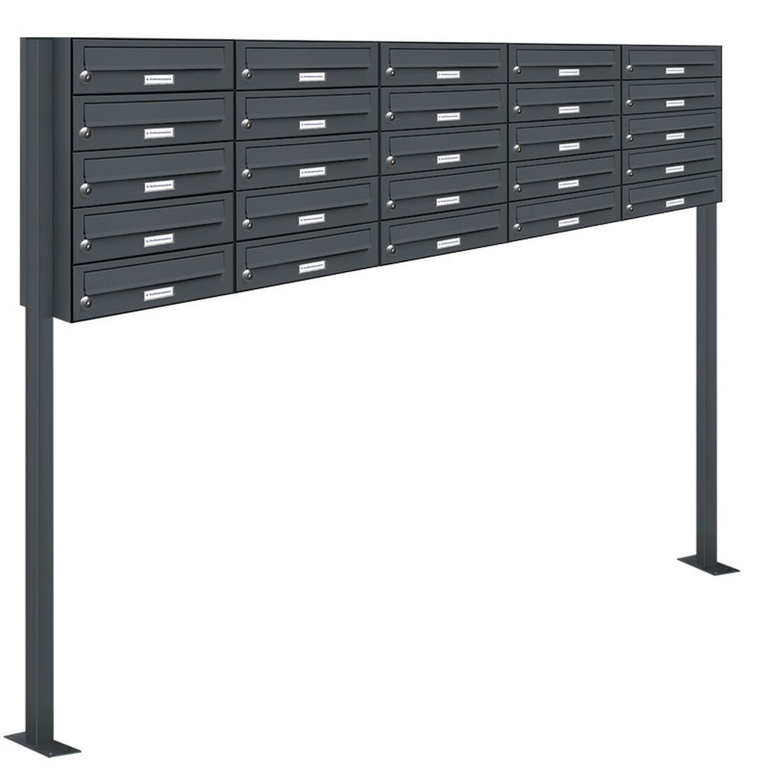 AL Briefkastensysteme 25 Fächer Premium Stand Briefkasten Anlage in RAL 7016 Anthrazit Grau, Post A4, robust, wetterfest, Artikelnummer: 132P25S5P7016