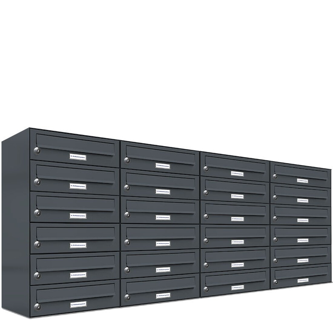 AL Briefkastensysteme 24 Fächer Premium Wand Briefkasten Anlage in RAL 7016 Anthrazit Grau, Post A4, robust, wetterfest, Artikelnummer: 132P24EA4