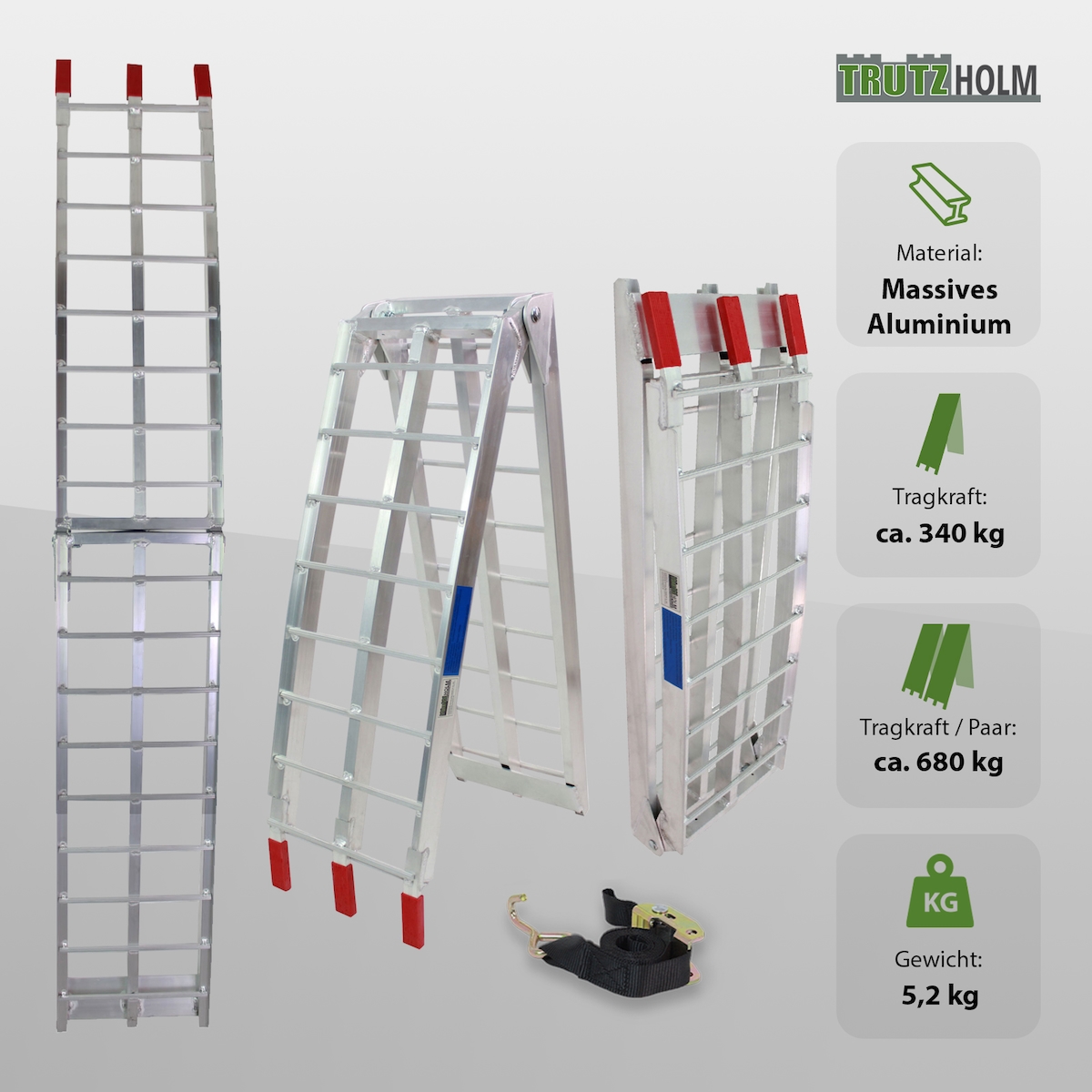 TRUTZHOLM 1 x Auffahrrampe klappbar 228 cm Traglast 340 kg Alu grau gelocht Rampen Motorradrampe