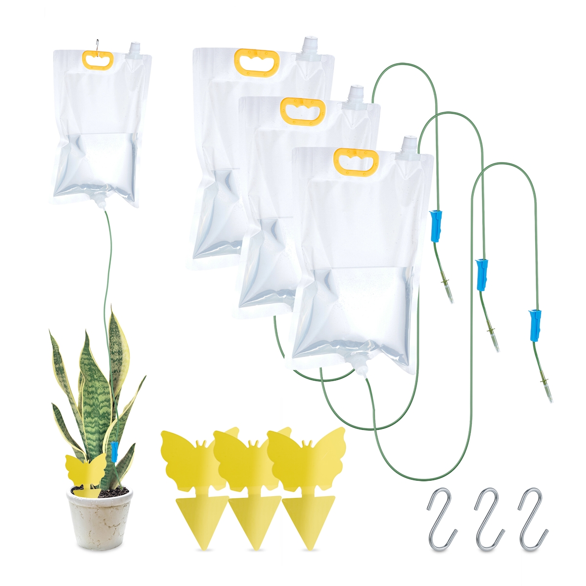 Relaxdays Tropfbewässerungsbeutel mit Gelbstickern, 4er Set, Pflanzen Infusionsbeutel 3,5 l, Bewässerungssystem, bunt
