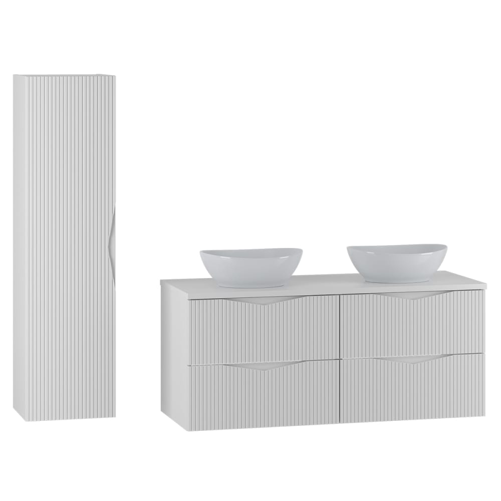 Set di mobili da bagno doppio lavabo effetto legno bianco 120cm