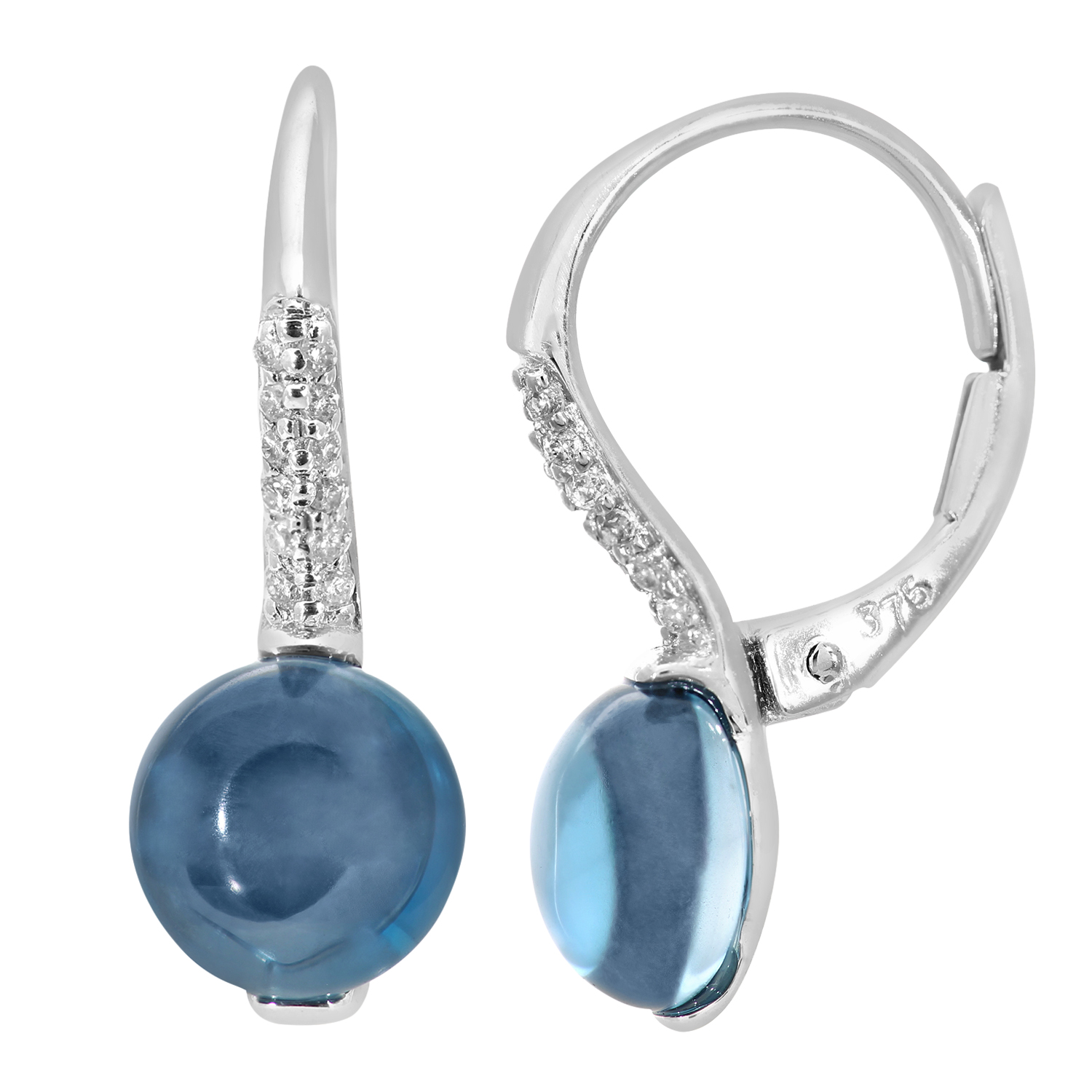 Diamant L'eternel Womens 9ct White Gold Diamond and Round 5.30ct Blue Topaz Gemstone Drop Earrings - One Size