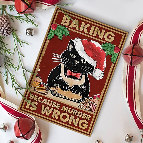 cartello natalizio in legno a forma di gatto nero da appendere, decorazione natalizia rettangolare a forma di gatto, cartello in legno stampato colorato per la stanza, arredamento per la casa o