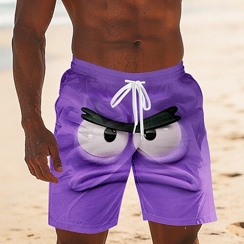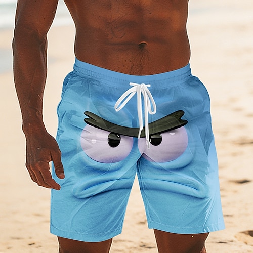 Per uomo Illusione ottica Fantasia Cartone 3D Volto umano Costumi da bagno Pantaloncini da mare Pantaloncini da Surf Misura del girovita medio Divertente Camicia hawaiana Vacanza al Mare Tasche