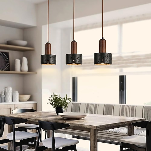 Lampada a sospensione in legno moderno di metà secolo, lampada a sospensione in marmo nero, mini lampada a sospensione da soffitto per isola cucina, lavello, lampadario rustico da fattoria per camera