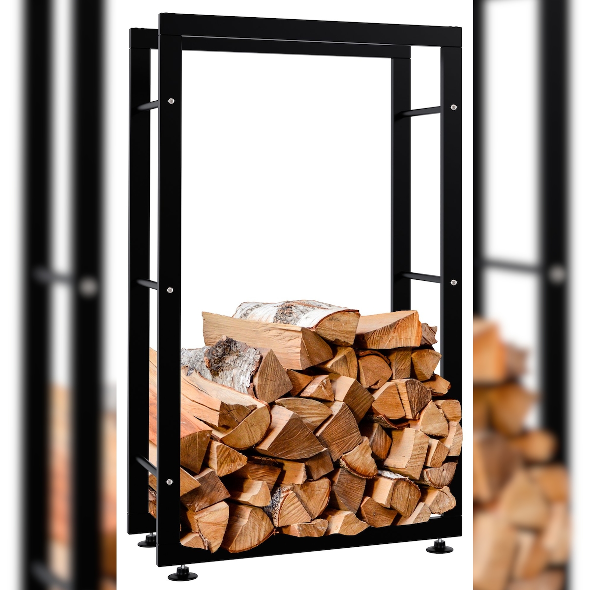 Relaxdays Kaminholzregal, Metall, Brennholzregal hoch, für Feuerholz, Stapelholz, Brennholz, HBT: 95x37x30 cm, schwarz