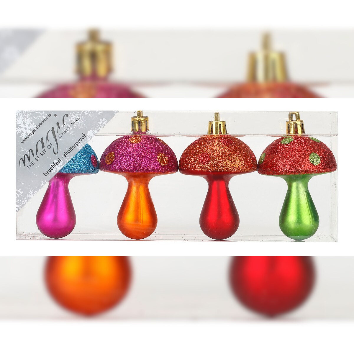 4 Fliegenpilze Christbaumschmuck Kunststoff Weihnachtskugeln Anhänger Mille Fiori