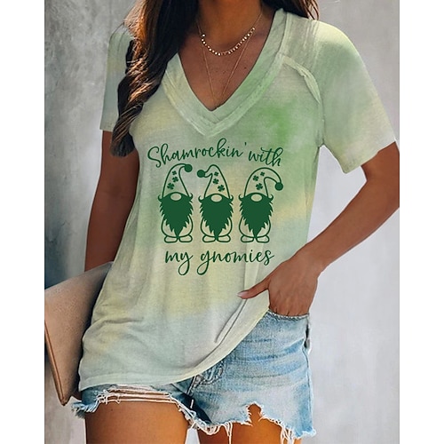 Giorno di San Patrizio Festa di San Patrizio Per donna Maglietta Cuore Foglia Giorno di San Patrizio Manica Corta Scollo a V Top Regolari Ferie Weekend Stampato Verde primavera Verde chiaro Verde