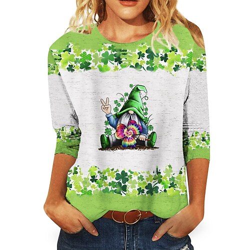 Giorno di San Patrizio Festa di San Patrizio Per donna Maglietta Foglia Giorno di San Patrizio Manica Lunga Girocollo Top Regolari Ferie Weekend Stampato Verde primavera Bianco Verde chiaro Verde