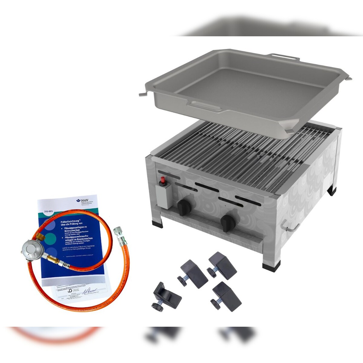 ChattenGlut Gasbräter 2-flammig 7,3kW Tischgerät Rost und Stahlpfanne mit DGUV