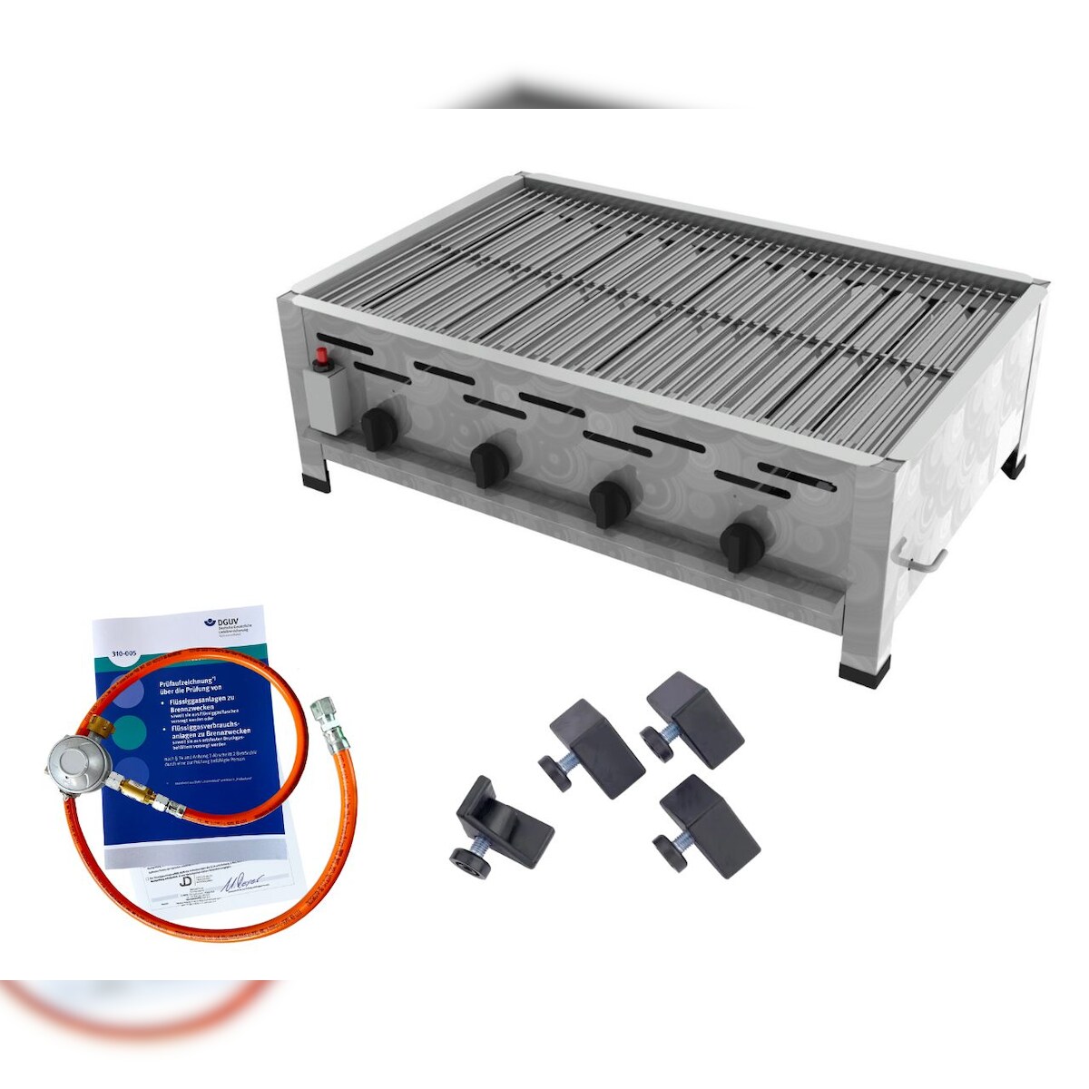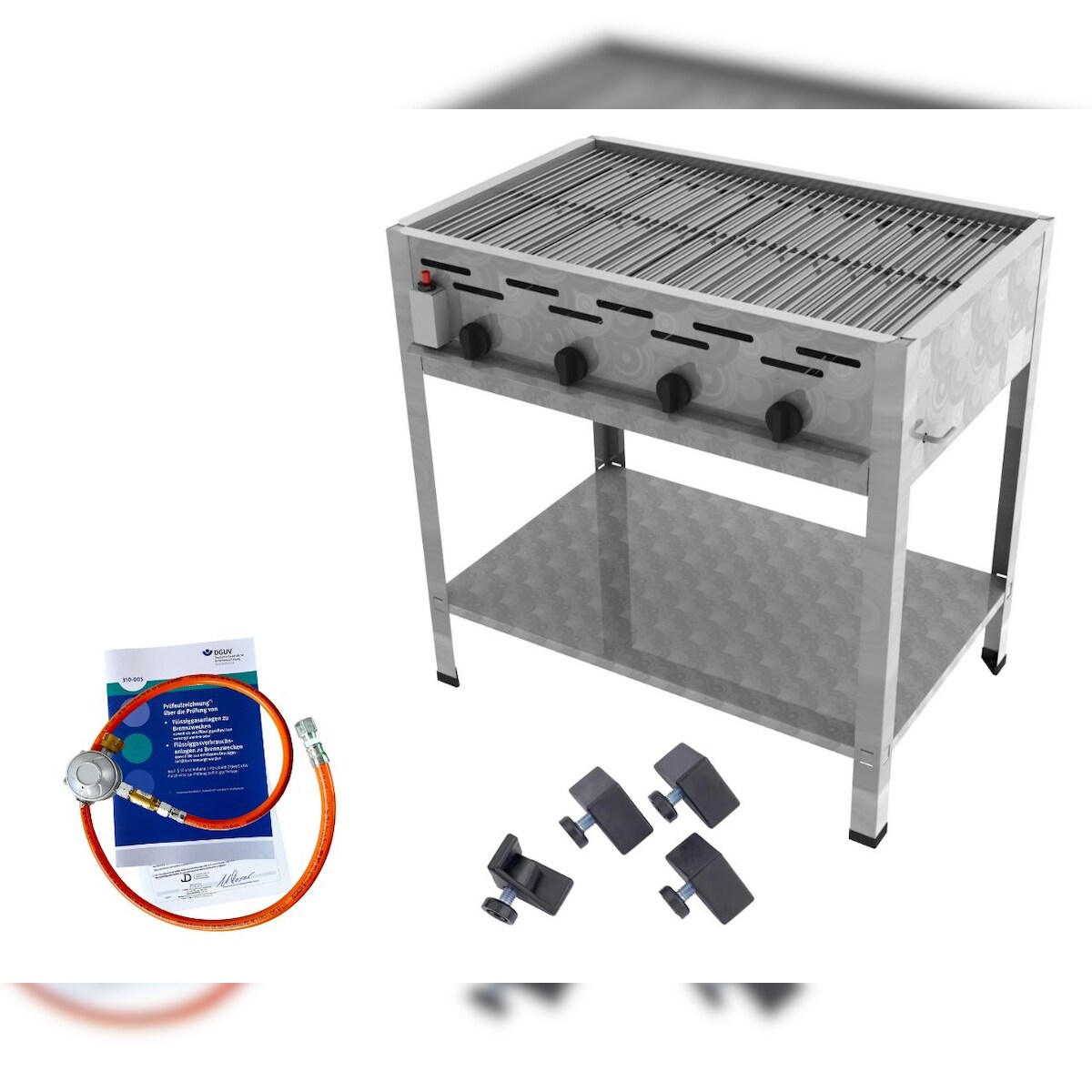 ChattenGlut Gasbräter 4-flammig 18kW Standgerät Edelstahlrost mit DGUV
