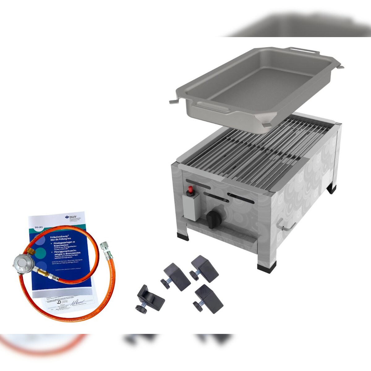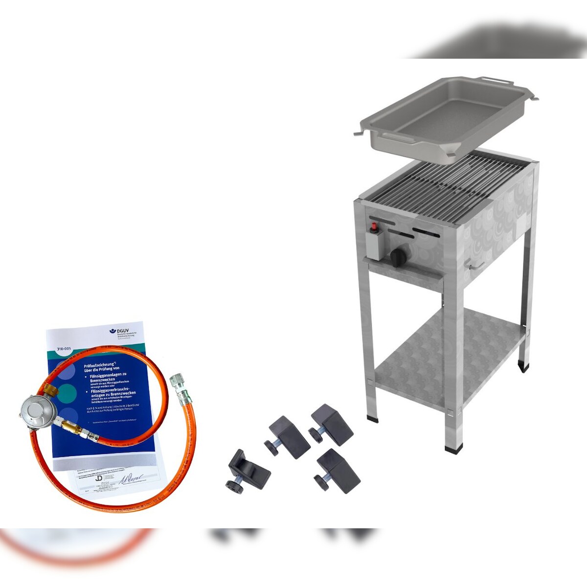 Gasbräter Stalpfanne Grillset 10 kW Edelstahl 3 flammig Gasschlauch B01+G02+G03