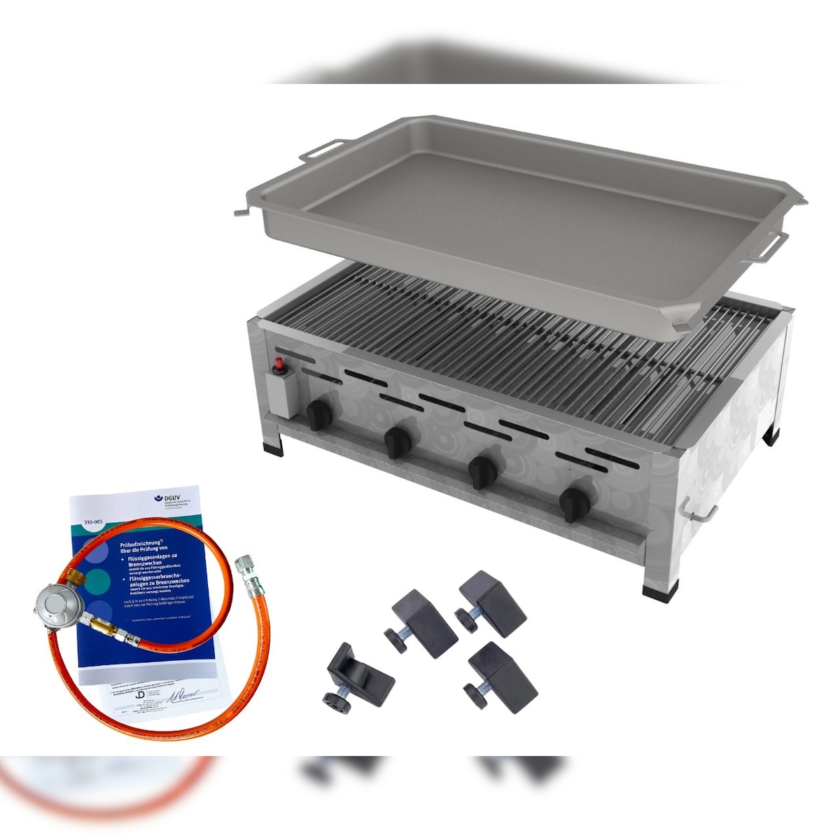 ChattenGlut Gasbräter 4-flammig 14,7kW Tischgerät Rost und Stahlpfanne mit DGUV