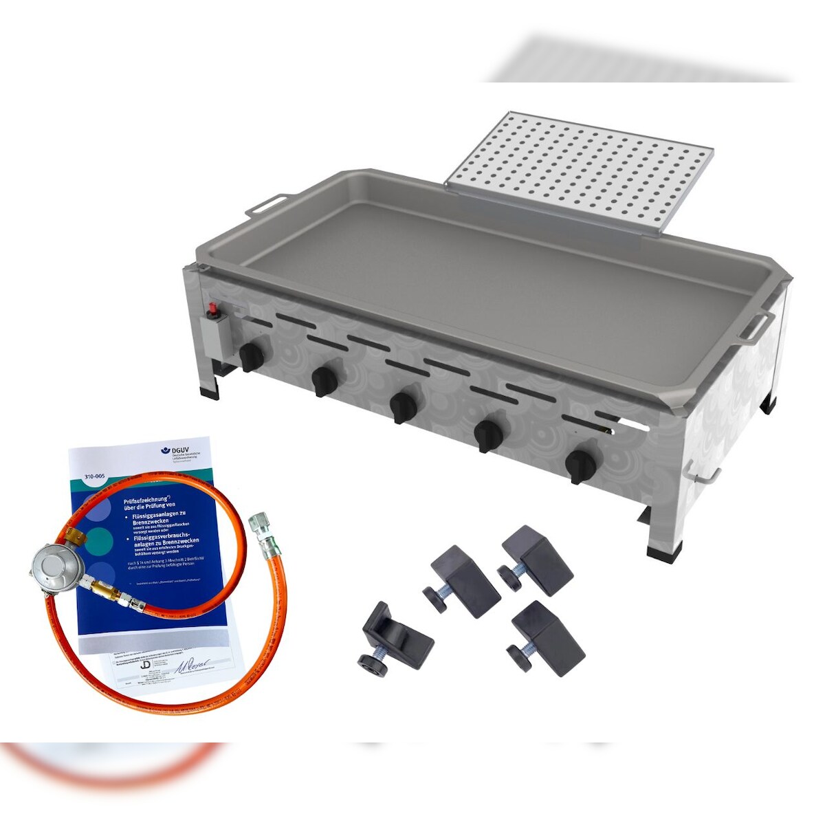 ChattenGlut Gasbräter 5-flammig 22,5kW Tischgerät Stahlpfanne mit Reibekuchen Aufsatz mit DGUV