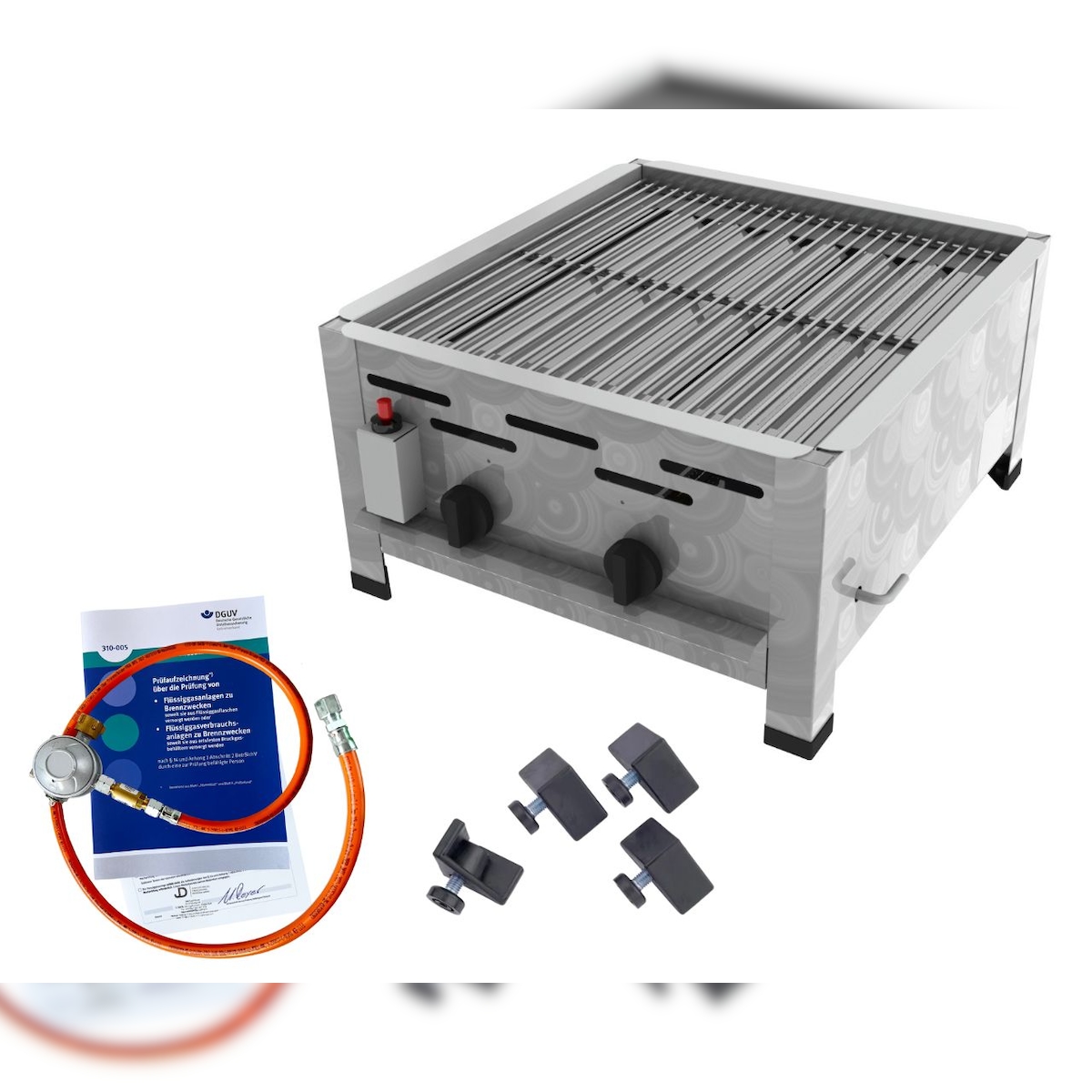 ChattenGlut Gasbräter 2-flammig 9kW Tischgerät Edelstahlrost mit DGUV