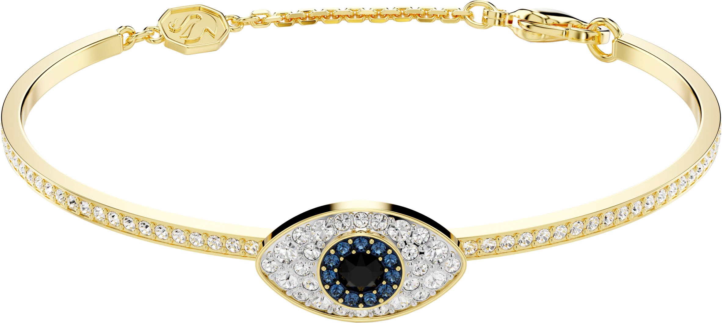 Armreif SWAROVSKI "Symbolica Böser Blick Magisches Auge" Gr. M, blau (gelbgoldfarben, blau, schwarz, kristallweiß, blau, schwarz, kristallweiß), Armbänder, Damen, M, Metall, Armreif, mit Swarovski Kristall