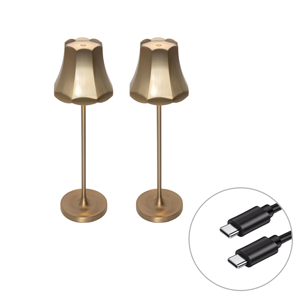Set 2 lampade tavolo retrò oro rosa ricaricabili IP44