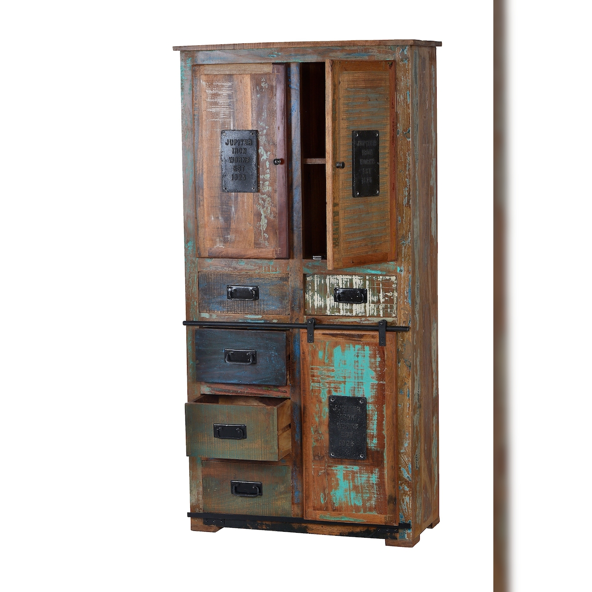 SIT Möbel Schrank aus recyceltem Altholz mit Metall | natur-bunt | B 90 x T 40 x H 180 cm | 11304-98 | Serie JUPITER