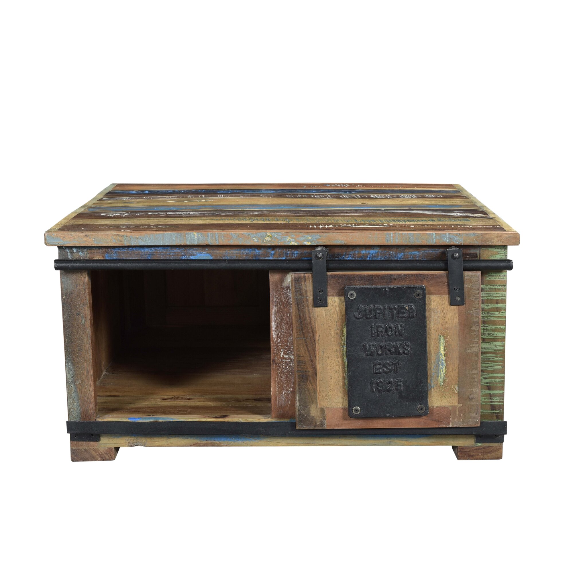 SIT Möbel Couchtischtruhe | 2 Schiebetüren | Altholz bunt lackiert | Metall schwarz | B 80 x T 80 x H 40 cm | 11394-98 | Serie JUPITER