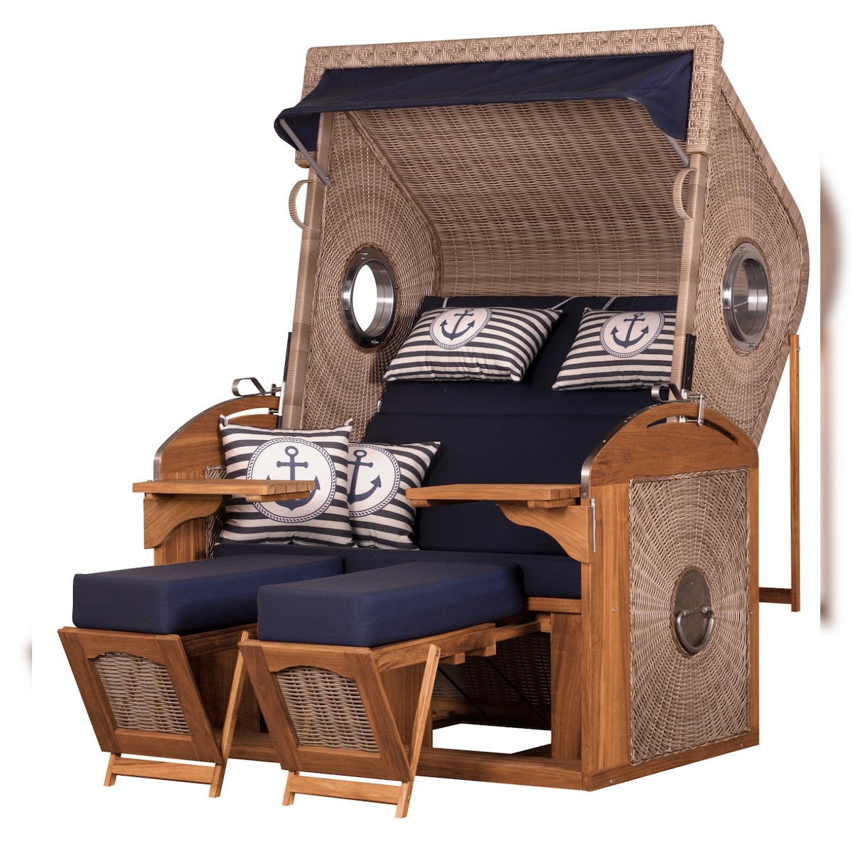 dekoVries GmbH Strandkorb deVries PURE® Sailor XL - PE white kubu - Dessin 198 - inkl. Schutzhülle