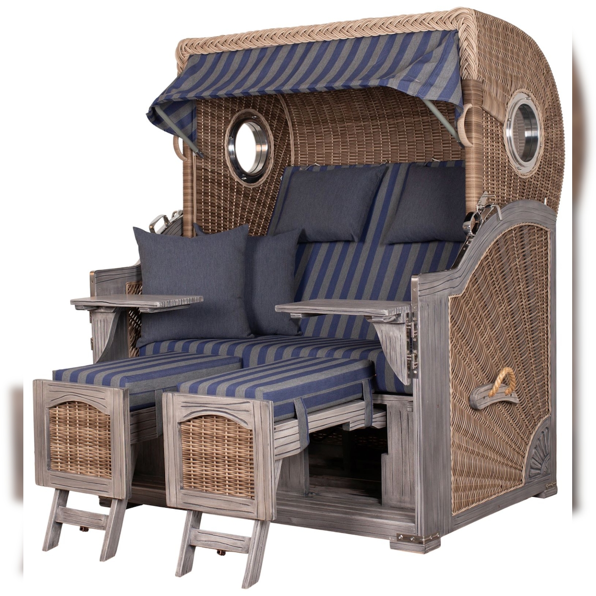 dekoVries GmbH Strandkorb deVries PURE® Seemöwe XL Vintage - PE white kubu - Dessin 249 - inkl. Schutzhülle