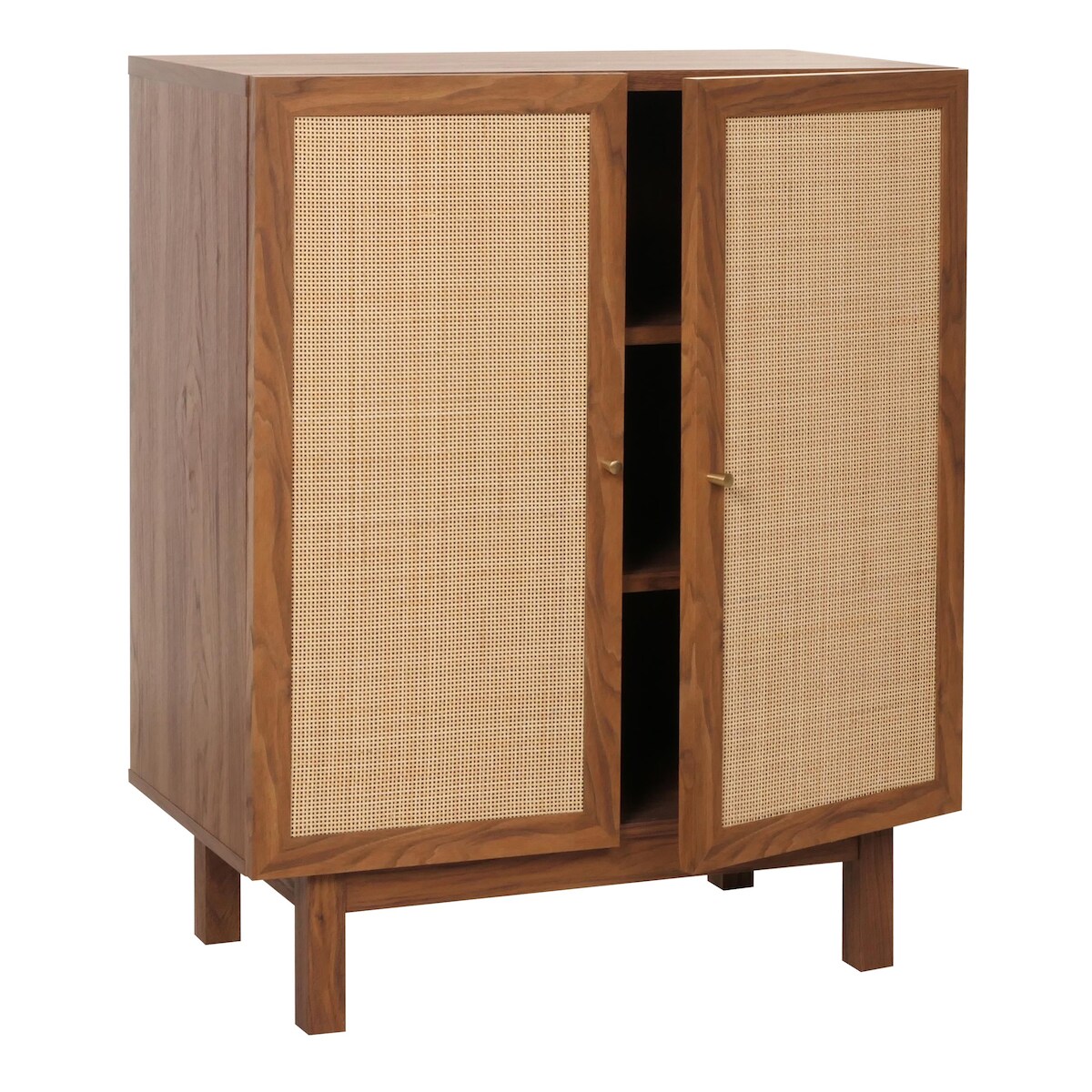 Mendler Highboard HWC-M51, Kommode Schrank Sideboard, Staufächer, Kubu Rattan 98x79x42cm ~ Walnuss-Optik