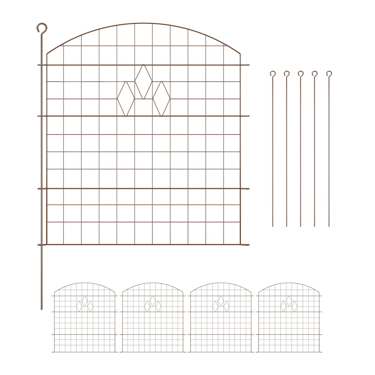Relaxdays Teichzaun, 5 Zaunelemente, je H x B: 78 x 76 cm, zum Stecken, aus Metall, für Garten, Pool, Beetzaun, braun