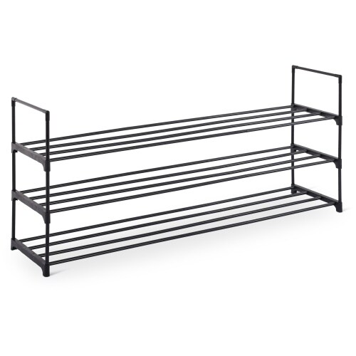 Schuhregal, 2 Böden, Schuhständer zum Stecken, Schuhaufbewahrung für bis zu 18 Paar Schuhe, 55cm hoch, 118cm breit, Metall, Schwarz, Raburg Easy-Sh