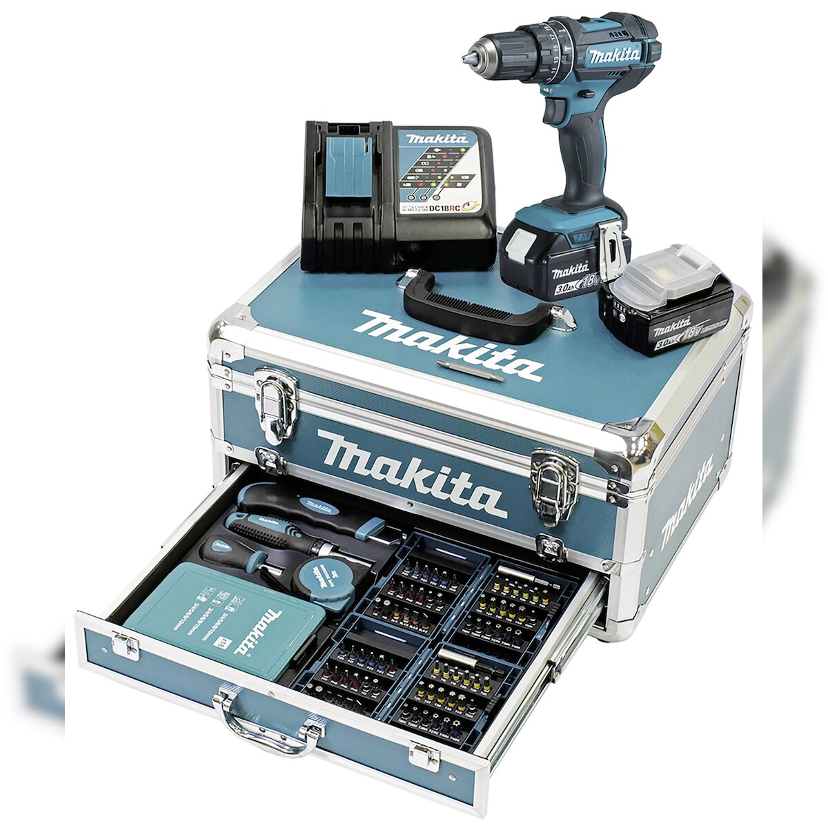 Makita DHP482RFX9 2-Gang-Akku-Schlagbohrschrauber inkl. 2. Akku, inkl. Koffer, mit Zubehör, inkl. La