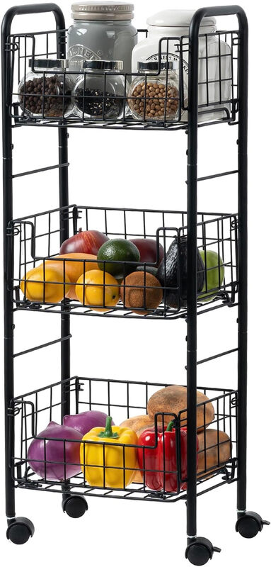 MyGift 3-stufiger Industrie-Küchenwagen mit Rollen, matt-schwarzes Metall, rollendes Aufbewahrungsregal