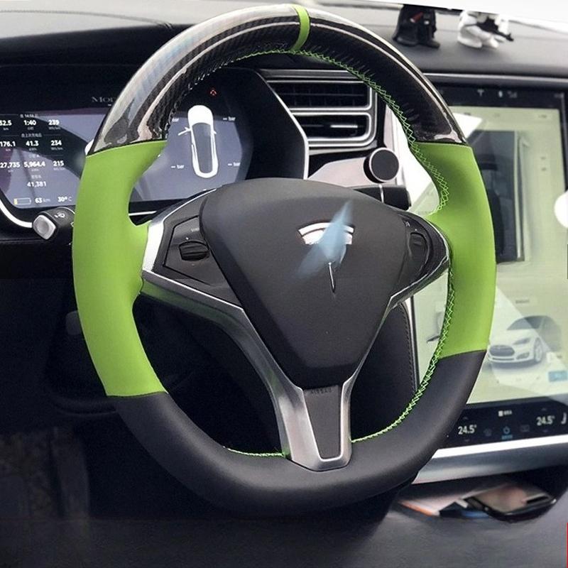 Pour Tesla Model S 2009-2018 Model X 2012-2018 Housse de Volant de Voiture en Cuir Fibre de Carbone Antidérapante Cousue à la Main