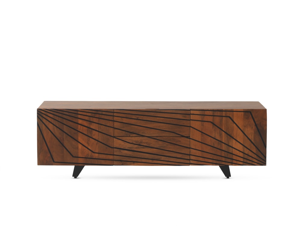 Meuble TV 2 portes et 2 tiroirs en bois massif de manguier