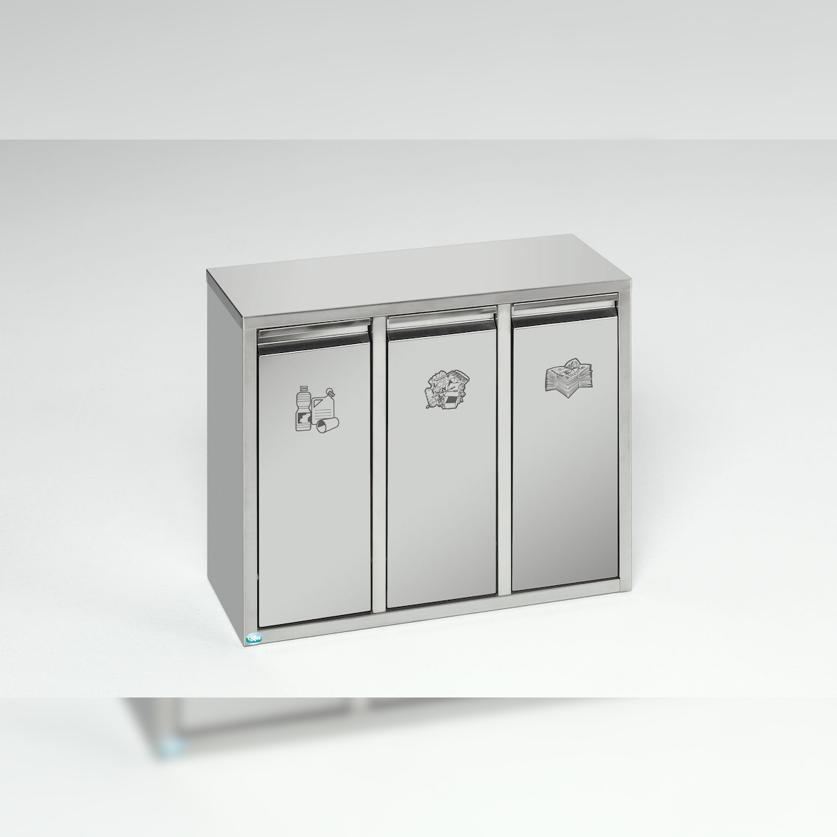 PROREGAL Wertstoffsortiersystem mit 3 Klapptüren | Stand- oder Wandbefestigung | 21 Liter, HxBxT 47x58x27cm | Edelstahl | Mülleimer Abfalleimer