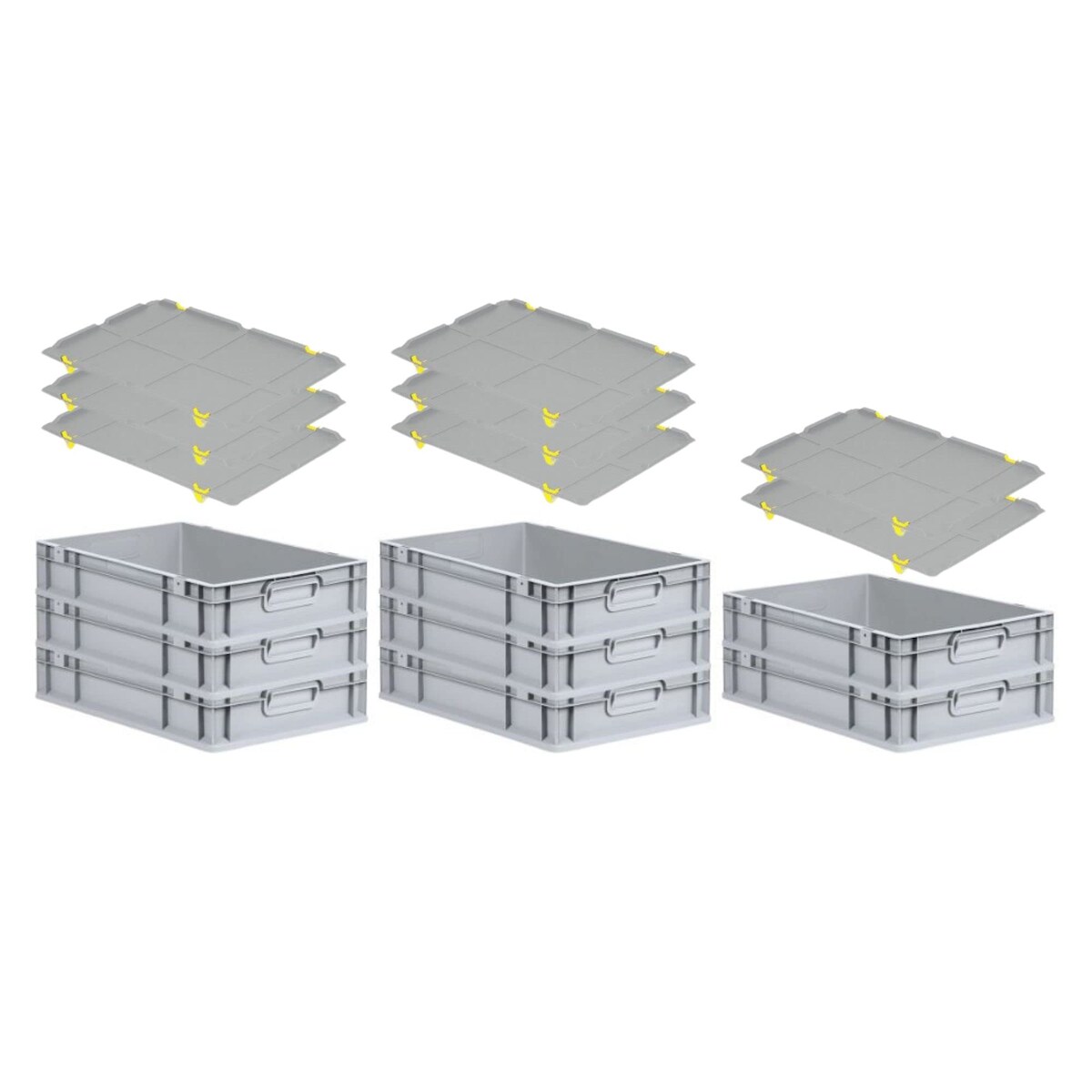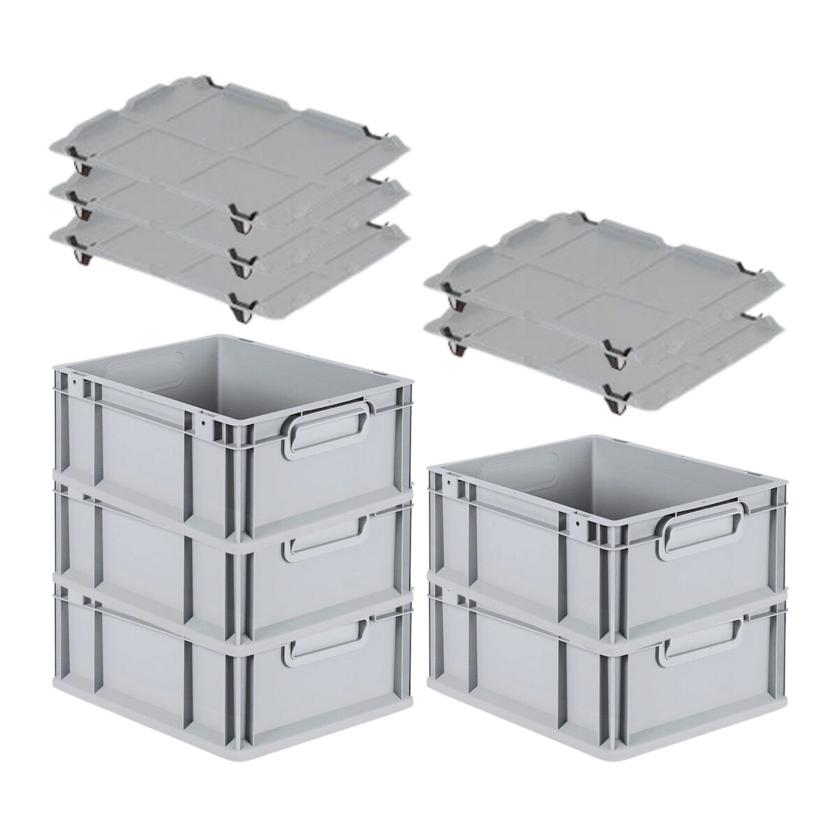 PROREGAL SparSet 5x Eurobox NextGen Economy mit Auflagedeckel & 4x Verschlüsse Schwarz, Griffe offen, HxBxT 17x30x40cm, 16L, Eurobehälter, Box