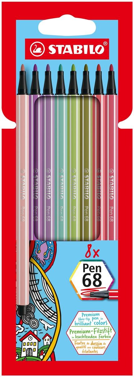 STABILO® 68/8-02 Pen 68 Premium-Filzstift Pastell - 8er Kunststoffetui sortiert