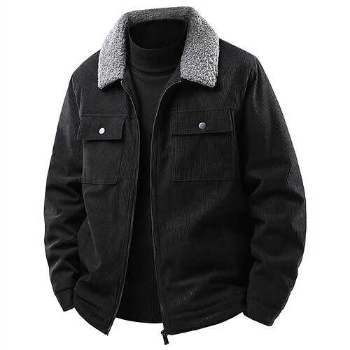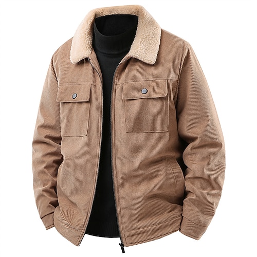 Per uomo Giacca Invernale Giacca in Velluto a Coste Giacca in Pile Giacca Casual Vacanza Quotidiano Calore Termico Tasca Pile Inverno Semplice Moda Streetwear Bavero Regolare Cachi Verde militare