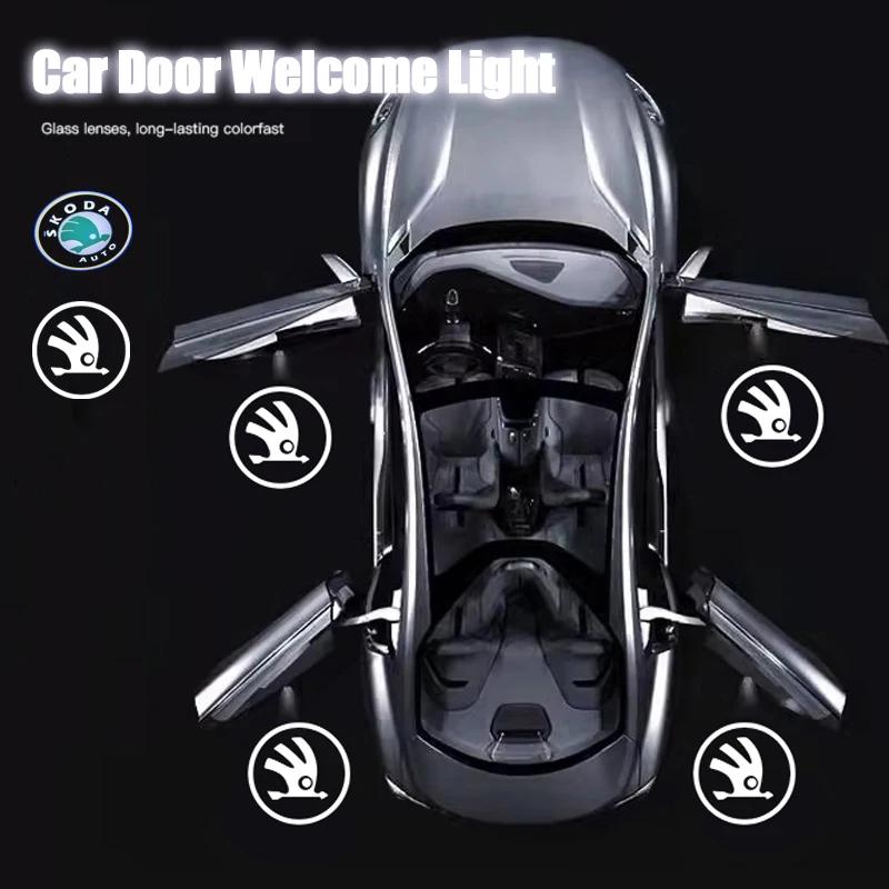 2025 New 4Pcs Car Door Welcome Light LED HD Projector Lamp Decoration For Skoda Octavia Superb Rapid Kodiaq Karoq Fabia Kamiq Vi