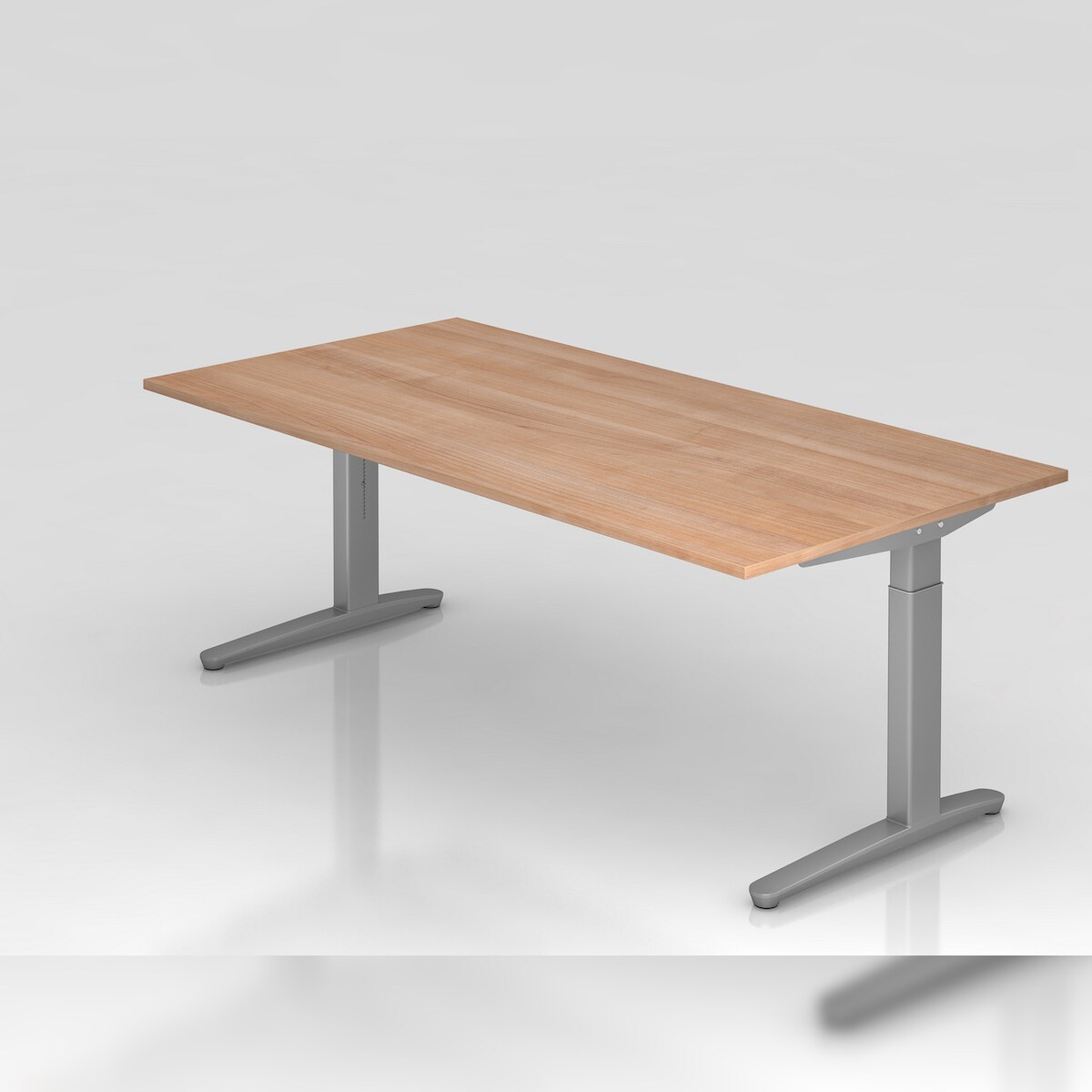 PROREGAL Schreibtisch Mika | Nussbaum | Silber Gestell | BxT 200x100cm | Arbeitshöhe 65-85cm | höhenjustierbar, 1cm Raster | C-Fuß-Gestell