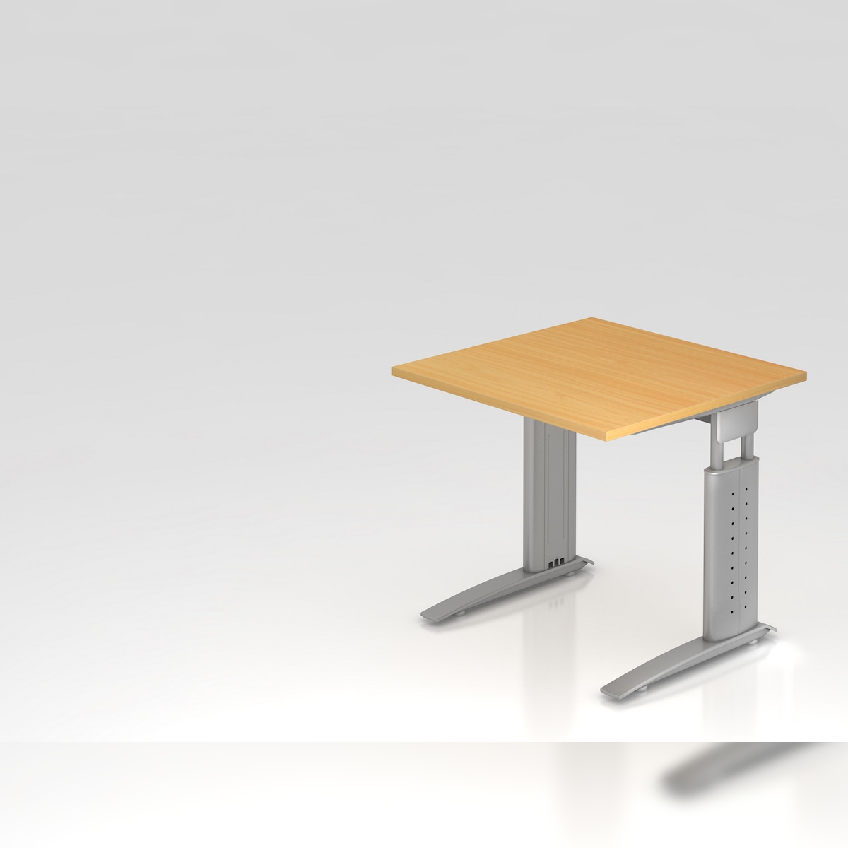 PROREGAL Schreibtisch Mauri | Buche | Silber Gestell | BxT 80x80cm | Arbeitshöhe 68-86cm | höhenjustierbar, 2cm Raster | C-Fuß-Gestell | Bürotisch