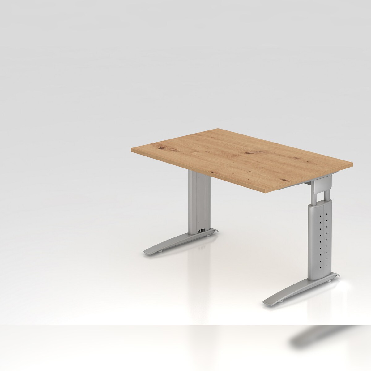PROREGAL Schreibtisch Mauri | Asteiche | Silber Gestell | BxT 120x80cm | Arbeitshöhe 68-86cm | höhenjustierbar, 2cm Raster | C-Fuß-Gestell