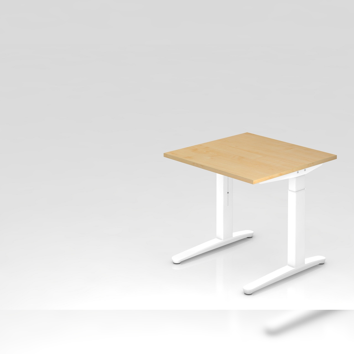 PROREGAL Schreibtisch Mika | Ahorn | Weißes Gestell | BxT 80x80cm | Arbeitshöhe 65-85cm | höhenjustierbar, 1cm Raster | C-Fuß-Gestell | Bürotisch