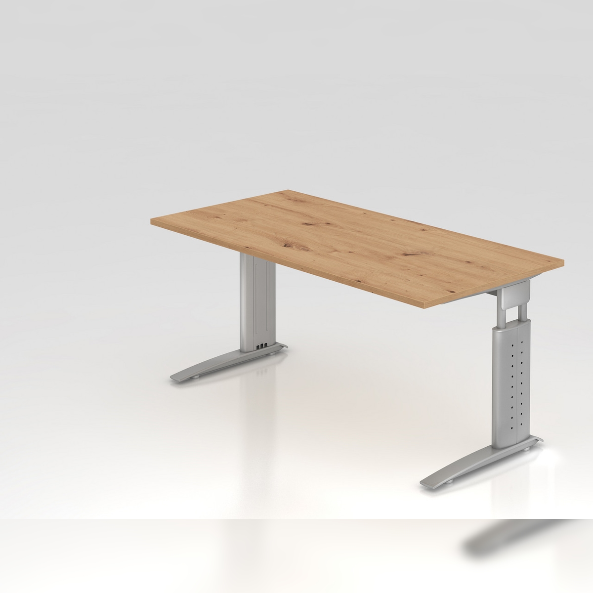 PROREGAL Schreibtisch Mauri | Asteiche | Silber Gestell | BxT 160x80cm | Arbeitshöhe 68-86cm | höhenjustierbar, 2cm Raster | C-Fuß-Gestell