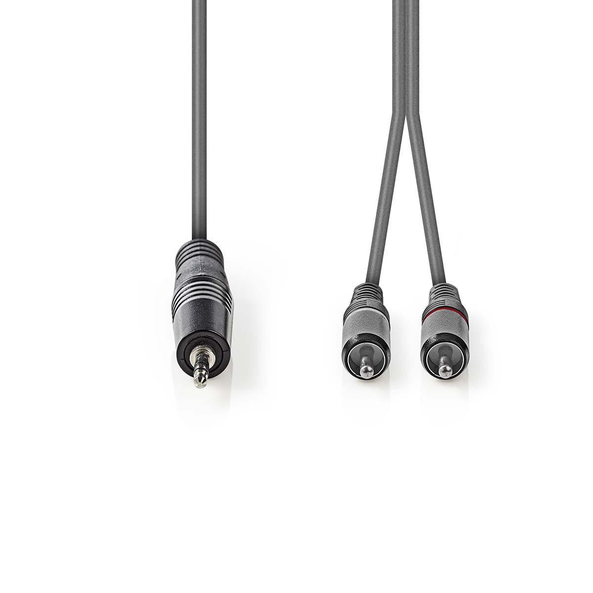 Nedis Stereo-Audiokabel - 3.5 mm Stecker - 2x RCA Stecker - Vernickelt - 3.00 m - Rund - Dunkelgrau - Kartonhülle