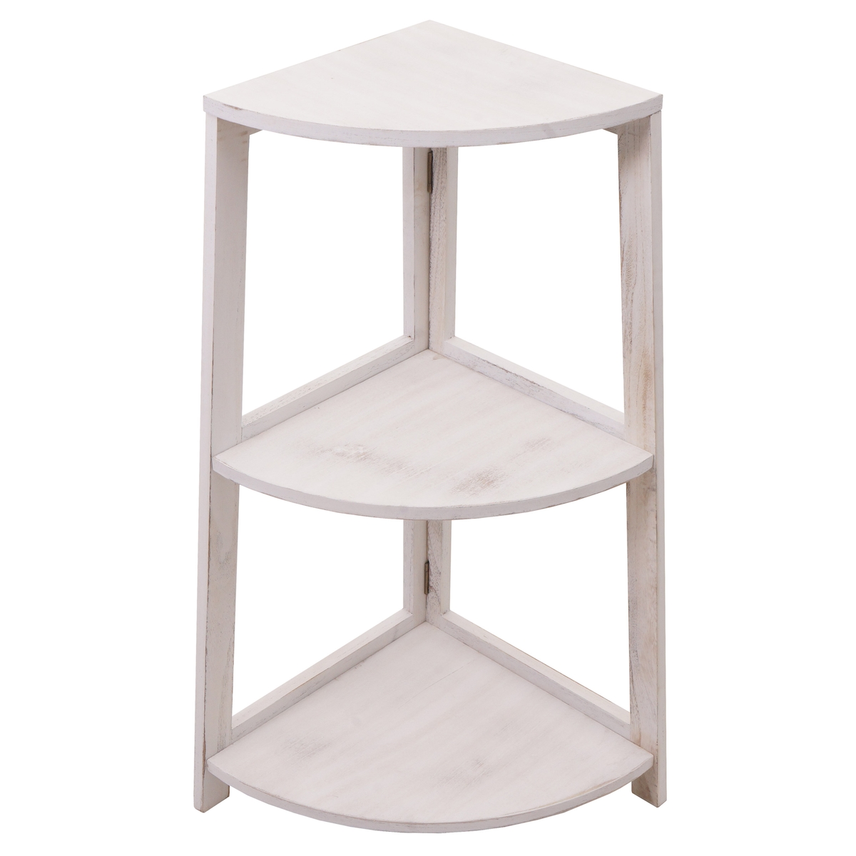 Mendler Eckregal HWC-K44, Regal Standregal Wohnregal, 3 Ablagen, 80x37x37cm MDF aus Paulownia ~ shabby weiß