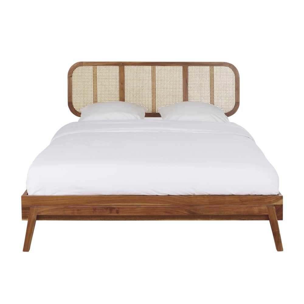 Letto in legno massello d'acacia e rattan da 160 cm con rete a doghe