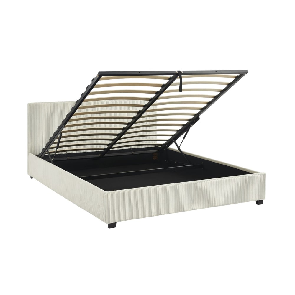 Letto a cassettone con rete a doghe 160cm, velluto a coste grosse,