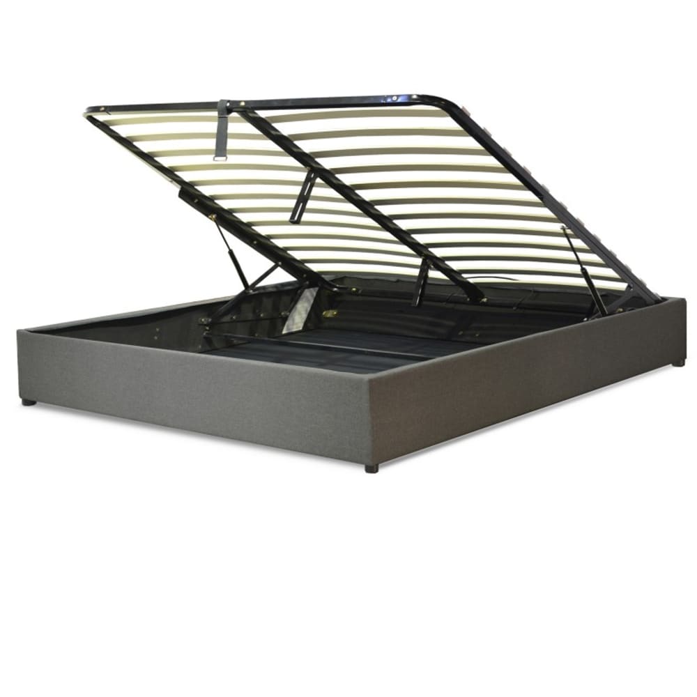 Letto contenitore in tessuto grigio chiaro con rete a doghe 200x200 cm