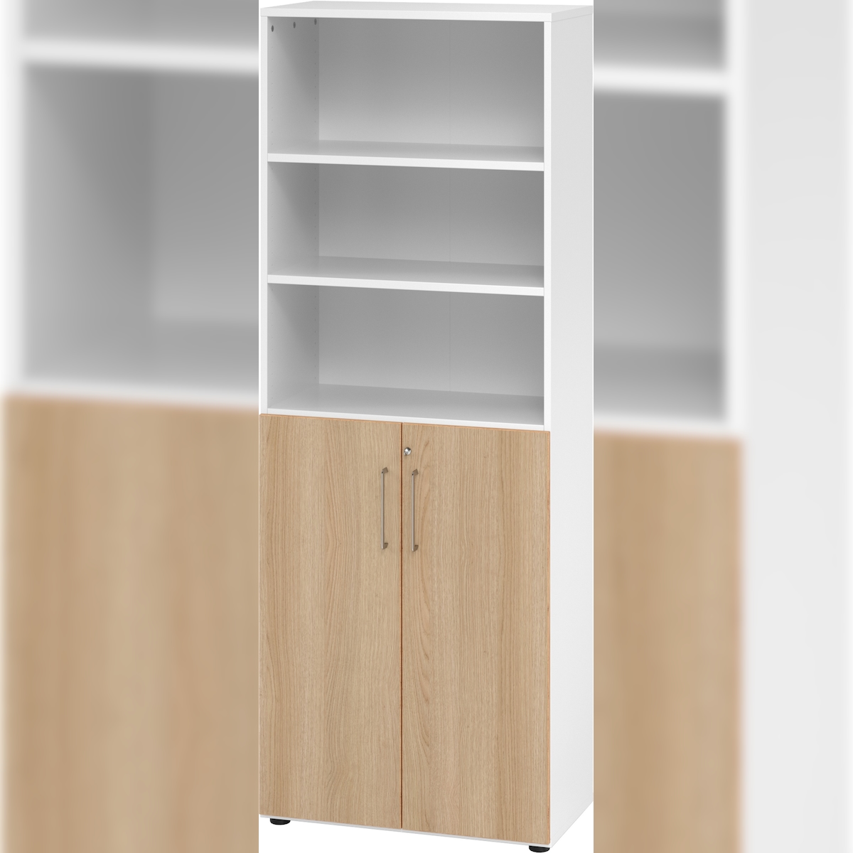 bümö Aktenregal & Schrank abschließbar, Büroschrank Regal Kombination Holz 80cm breit in Weiß/Eiche - abschließbarer Schrank für's Büro &