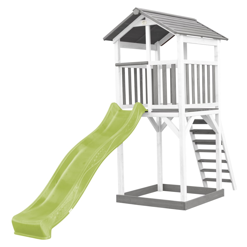 Casetta per bambini con scivolo bianco, legno FSC, marrone/verde
